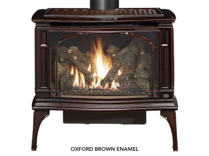 The Greenfield™ is Lopi’s largest cast iron gas stove. This powerhouse of heater produces up to 40,000 BTUs and heats up to 2,000 square feet. The number one feature of the Greenfield is its massive, three-sided wrap around ceramic glass fire viewing area, which comes standard with 2015 ANSI-compliant invisible safety screens. Anther amazing feature of the Greenfield is its downward pointing adjustable accent light which beautifully highlights the award-winning Ember-Fyreburner and interior of the stove, whether is heat is on or off.